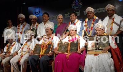 Photo Caption : Dr BT Lalitha Naik and others presented 2015 Awards of Kannada Pusthaka Pradhikara to dignitaries in various fields at Nayana, Kannada Bhavan, in Bengaluru on Friday 30th December 2016