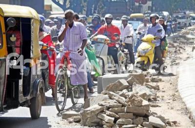 Event Description : Motorists facing problems while driving through the Vihar Road near Frazer Town, which is covered with stones and mud, in Bengaluru on Sunday 1st January 2017 Pics