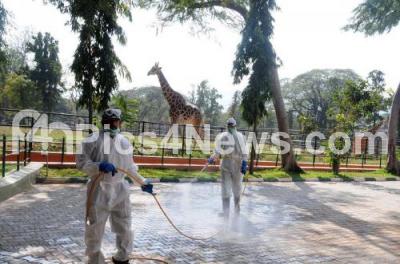 Event Description : Mysuru Zoo employees seen sanitising the Zoo premises this morning following bird flu scare, as a result the Mysuru Zoo is shut down, in Mysuru on Wednesday 4th January 2017
