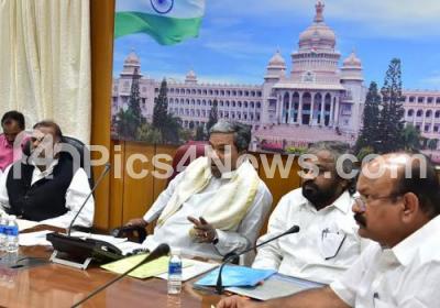 Photo Caption : CM Siddaramaiah with Ministers Anjaneya, Eshwar Khandre and others seen at the meeting on Caste Certificate to Gonda Community at Krishna, in Bengaluru on Friday 6th January 2017