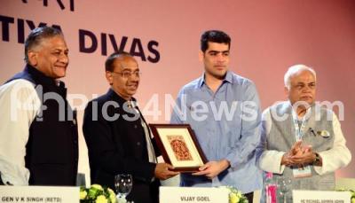 Event Description : Union Minister Youth Affairs and Sports Vijay Goel with Union Minister State for External Affairs Dr VK Singh, Vice President of Suriname , HE Michael Ashwin Adhin, Karnataka Ministers RV Deshpande and Priyanka M Kharge at the inauguration Youth Pravasi Bharatiya Divas 2017 at Bengaluru International Exhibition Centre, in Bengaluru on Saturday 7th January 2017