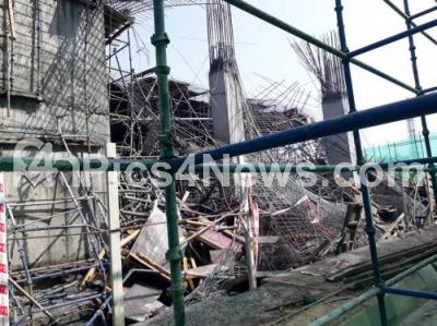 Photo Caption : A view of an under construction building which collapsed near Accenture campus in Whitfield, in Bengaluru on Sunday 8th January 2017