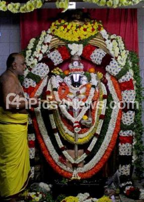 Photo Caption : Priest performing pooja to lord Venkateshwara on the occasion of “Vykunta Ekadashi†, in Bengaluru on Sunday 8th January 2017