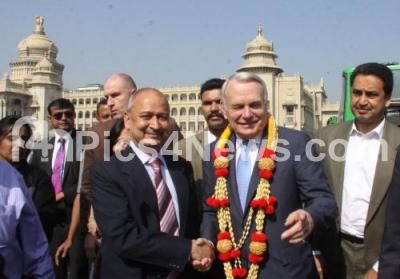 Photo Caption : French Minister of Foreign Affairs and International Development Jean Marc Ayrault with his delegation and Pradeep Singh Kharola, MD BMRCL seen in front of Vidhan Soudha, Metro Station during the four day visit to India, in Bengaluru on Monday 9th January 2017