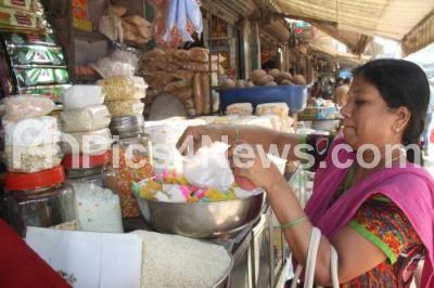 Photo Caption : People throng to KR Market to purchase the Sankranti Festival items for the upcoming Sankranti Festival, in Bengaluru on Wednesday 11th January 2017