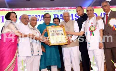 Photo Caption : Governor Vajubhai Vala presenting 13th Samman Samaroh at a programme organized by Akhila Bharatiya Oswal Parishad at Palace Grounds, also seen are Ray Chand Khater, Founder Chairman, Naratsingh Choraria, National President, Gauthamchand Nahar, General Secretary and others, in Bengaluru on Sunday 15th January 2017