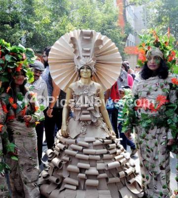 Photo Caption : Students dressed colorful to create awareness on environment, during “Chitra Sante 2017â€, annual art exhibition organised by Chitrakala Parishat, in Bengaluru on Sunday 15th January 2017