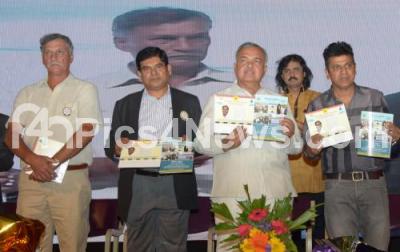Photo Caption : Minister Ramalinga Reddy with Actor Shivarajkumar, Roger Binny , Former Indian Cricketer and others seen releasing a brochure at the Valedictory function of Road Safety Week at Town Hall, organised by Transport Department, in Bengaluru on Monday 23rd January 2017