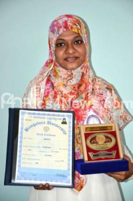 Photo Caption : Kashifa F displaying her certificates and gold medals during 52nd Annual convocation of Bangalore University at Jnana Jyothi Auditorium, in Bengaluru on Friday 27th January 2017