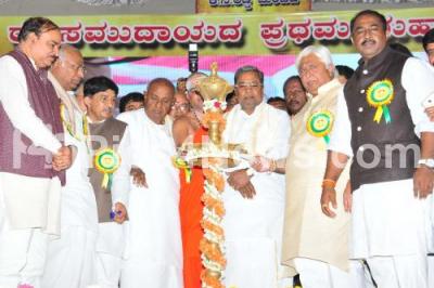 Photo Caption : CM Siddaramaiah with Former PM HD Devegowda, Union Minister Ananth Kumar, MP Mallikarjuna Kharge, Minister HK Patil, Rajya Sabha Member KC Ramamurthy, MLA Satish Reddy and Reddy Community Leaders at the inauguration of First Mammoth conference of Reddy Community at Palace Grounds, in Bengaluru on Sunday 29th January 2017