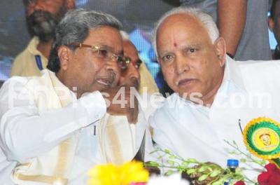 Photo Caption : CM Siddaramaiah discussing with BJP State President BS Yeddyurappa at the inauguration of First Mammoth conference of Reddy Community at Palace Grounds, in Bengaluru on Sunday 29th January 2017