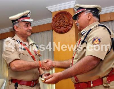 Photo Caption : Newly appointed DG and IGP Rupak Kumar Datta taking charge from outgoing DG and IGP Om Prakash, in Bengaluru on Tuesday 31st January 2017