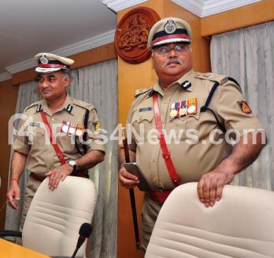 Photo Caption : Newly appointed DG and IGP Rupak Kumar Datta arrives after taking Guard of Honour as outgoing DG and IGP Om Prakash looks on, in Bengaluru on Tuesday 31st January 2017