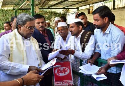 Photo Caption : CM Siddaramaiah seen listening to public grievances during the Janatha Darshan program at Krishna, in Bengaluru on Wednesday 1st February 2017