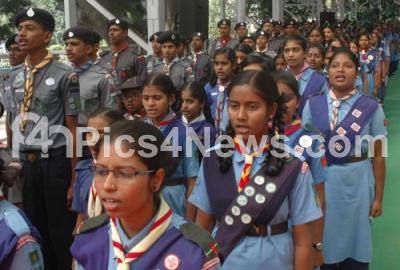 Photo Caption : Scouts and Guides seen at the Scouts and Guides awards program at Raj Bhavan, in Bengaluru on Friday 3rd February 2017