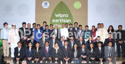 Photo Caption : Azim Premji, Chairman, Wipro and Anurag Behar, Chief Sustainability Officer, Wipro Ltd seen posing group photo with Wipro Earthian awardees during Wipro earthian, India largest sustainability education program for schools and colleges, in Bengaluru on Saturday 4th February 2017