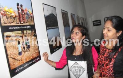 Photo Caption : Visitors looking at the mining photo exhibition of Sudhir Shetty at Rangoli METRO Station, MG Road, in Bengaluru on Sunday 5th February 2017