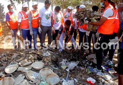 Members of Jaya Karnataka clearing garbage during Swachata Andolana at Anand Rao Circle, in Bengaluru on Sunday 5th February 2017