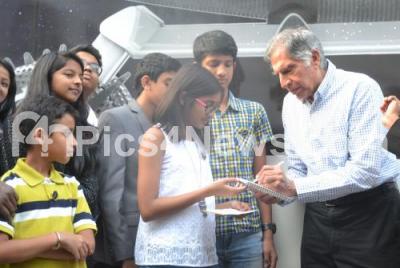 Photo Caption : Ratan Tata seen signing autographs to children gathered during the launch of the “Moonshot Wheels†to inspire next generation, the Teamindus foundation initiative will stem and Space education to children across India, the launch program was held at Teamindus campus near Hebbal, in Bengaluru on Tuesday 7th February 2017
