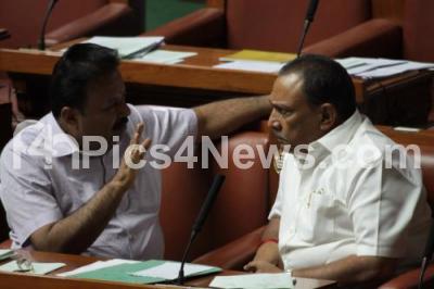 Photo Caption : JDS rebel MLA Cheluvarayaswamy and Minister A Krishnappa seen at the Assembly Session at Vidhana Soudha, in Bengaluru on Wednesday 8th February 2017