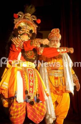 Yakshagana artists from Yakshakala sangha troup performing 'Gadha Yuddha', an episode from Mahabharata, as part of Bengalooru Habba-2007 at Town Hall, in Bangalore on Tuesday 4th Dec 2007