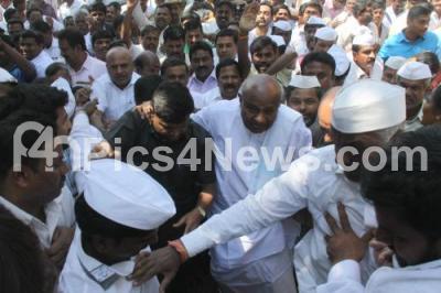 Photo Caption : HD Devegowda arriving for the JDS Election Conference at Palace Grounds, in Bengaluru on Friday 10th February 2017