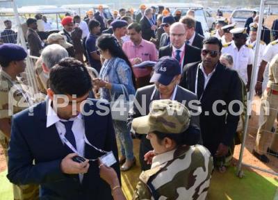 Photo Caption : Tight security check during inauguration of AERO INDIA 2017 at Air force station, in Bengaluru on Tuesday 14th February 2017