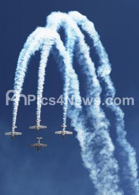 Photo Caption : Yakovlev aircrafts aerobatics display during 11th edition of 2nd day of the 11th biennial edition of AERO INDIA 2017 at Yelahanka Air base, in Bengaluru on Wednesday 15th February 2017