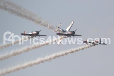 Photo Caption : Yakovlev aircrafts aerobatics display during 11th edition of 2nd day of the 11th biennial edition of AERO INDIA 2017 at Yelahanka Air base, in Bengaluru on Wednesday 15th February 2017