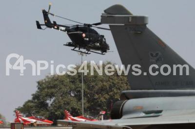 Photo Caption : LCH aircraft display during 11th edition of 2nd day of the 11th biennial edition of AERO INDIA 2017 at Yelahanka Air base, in Bengaluru on Wednesday 15th February 2017