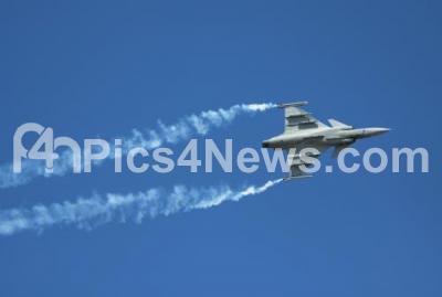 Photo Caption : Gripen aircraft performing during 11th edition of 2nd day of the 11th biennial edition of AERO INDIA 2017 at Yelahanka Air base, in Bengaluru on Wednesday 15th February 2017