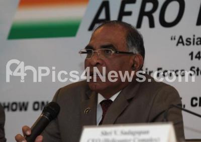 T Suvarana Raju, CMD, HAL addressing press conference during 11th edition during the 2nd day of the 11th biennial edition of AERO INDIA 2017 at Yelhanka Air base, in Bengaluru on Wednesday 15th February 2017