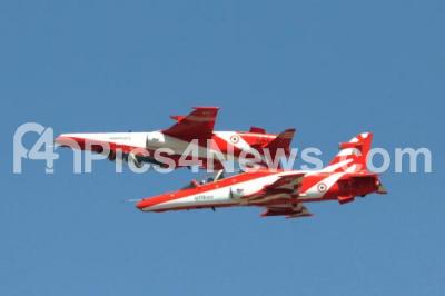 Photo Caption : Surya Kiran aircraft display during 3rd day of the 11th biennial edition of AERO INDIA 2017 at Yelhanka Air base, in Bengaluru on Thursday 16th February 2017