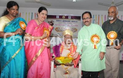 Photo Caption : Kannada Poet Hampa Nagarajaiah being felicitated by Prof Ramkrishna and Girija Naik, Principal and Director National College and others during the National Seminar on National Poet Kuvempu at National College, in Bengaluru on Monday 20th February 2017