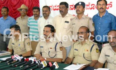 Photo Caption : DCP Dr Sharanappa addressing a press conference with police officers about recovered property during property parade at Bangalore South Division, in Bangalore on Wednesday 22nd February 2017