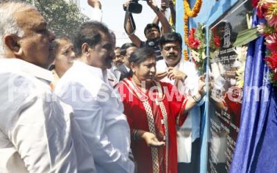 Ministers KJ George with Ramalinga Reddy and Mayor G Padmavathi inaugurated the Skywalk at Murgeshpalya, HAL Road, in Bangalore on Wednesday 22nd February 2017