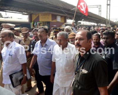 Private shops and commercial establishments were mostly shut in Mangaluru and in other parts responding to the bandh called by VHP, Bajrang Dal and some fringe right wing outfits and backed by BJP to protest the attacks on BJP and RSS cadres in Kerala, Pinarayi Vijayan, Kerala Chief Minister arrived in Mangaluru under heavy security brushing aside protests to address a CPIM rally, in Mangaluru on Saturday 25th February 2017