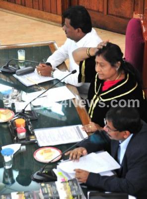 Photo Caption : Mayor G Padmavathi with Deputy Mayor Anand and BBMP Commissioner Manjunath Prasad at BBMP Council meeting, in Bengaluru on Tuesday 28th February 2017