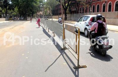 Event Description : People using Central Library road, Cubbon Park to reach Hudson Circle due to Nrupatunga Road being closed, as the white topping is being laid at Nrupatunga Road, as part of the Tender SURE work, which would take atleast more than a month to complete the road, in Bengaluru on Tuesday 28th February 2017