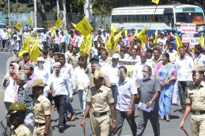 Members of Karnataka State Tailors Association partake in protest rally from City Railway Station to Freedom Park to fulfill their various demands, in Bengaluru on Tuesday 28th February 2017