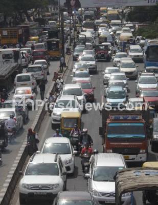 Heavy traffic jam at Silk Board Junction at Hosur Road, in Bengaluru on Wednesday 1st March 2017