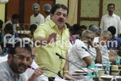 Photo Caption : MLA Zameer Ahmed Khan seen addressing the meeting with Bengaluru City MLAs, MLCs and MPs regarding the drinking water supply for the Bengaluru City in the presence of Bengaluru City MLAs, MLCs and MPs at Vidhan Soudha, in Bengaluru on Thursday 2nd March 2017