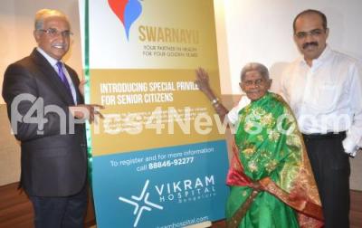 Event Description : Saalumarada Thimmakka, Environmentalist with Sudhir Pai, CEO, Vikram Hospital and Dr Manjunath K N, Consultant Internal Medicine and Geriatrician inaugurated the Vikram Hospital Swarnayu, a senior citizens club at Vikram Hospital, in Bengaluru on Friday 3rd March 2017