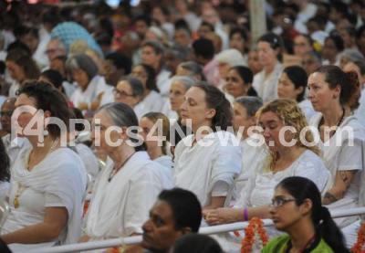 Photo Caption : Foreign devotees seen meditating at the Mata Amritanandamayi Satsang, Bhajan, Dhyan and Darshan program at Mata Amritanandamayi Math, in Bengaluru on Wednesday 8th March 2017