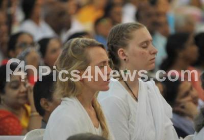 Photo Caption : Foreign devotees seen meditating at the Mata Amritanandamayi Satsang, Bhajan, Dhyan and Darshan program at Mata Amritanandamayi Math, in Bengaluru on Wednesday 8th March 2017