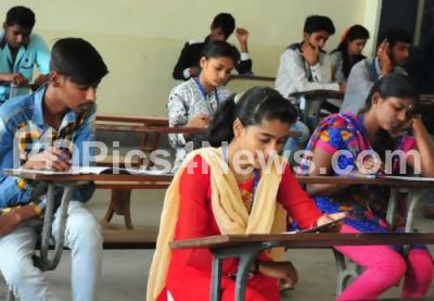 Photo Caption : 2nd PU Students writing their first 2nd PU exam paper at examination centre, in Bengaluru on Thursday 9th March 2017