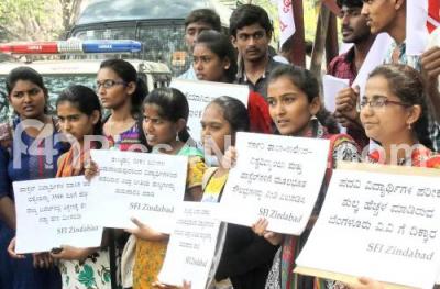 Photo Caption : SFI students protesting at SBM Circle to fulfill their various demands, in Bengaluru on Monday 13th March 2017