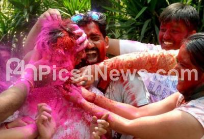 Event Description : People celebrate Holi on the occasion of Holi festival, in Bengaluru on Monday 13th March 2017