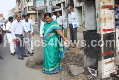 Photo Caption : BBMP Mayor Padmavathi seen inspecting the Okalipuram during the inspection drive, in Bengaluru on Wednesday 15th March 2017
