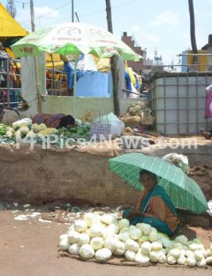 Event Description : Vegetable vendors at KR Market having a tough time in business and facing this scorching heat in summer, in Bengaluru on Wednesday 15th March 2017